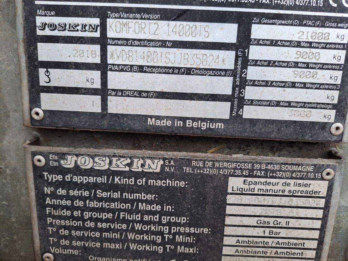 2018 JOSKIN KOMFORT 2 14000 TS VACUUM TANKER.